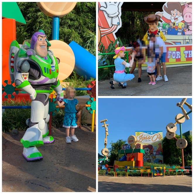 We walked through Toy Story Land on our way to a fast pass but didn’t really have time to stop. There were also lots of characters out doing meets, as you see Buzz, Woody and Bo Peep above.