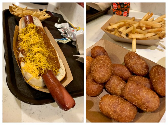 After about six hours in the park, we headed back to our resort for another afternoon nap! I found that freshening up and changing clothes really gave me a burst of energy to hit the parks again in the evenings. By 6:00 we were entering Magic Kingdom for the last time! We waited in a not-too-long line at Casey’s Corner for Paul’s favorite meal of the trip!