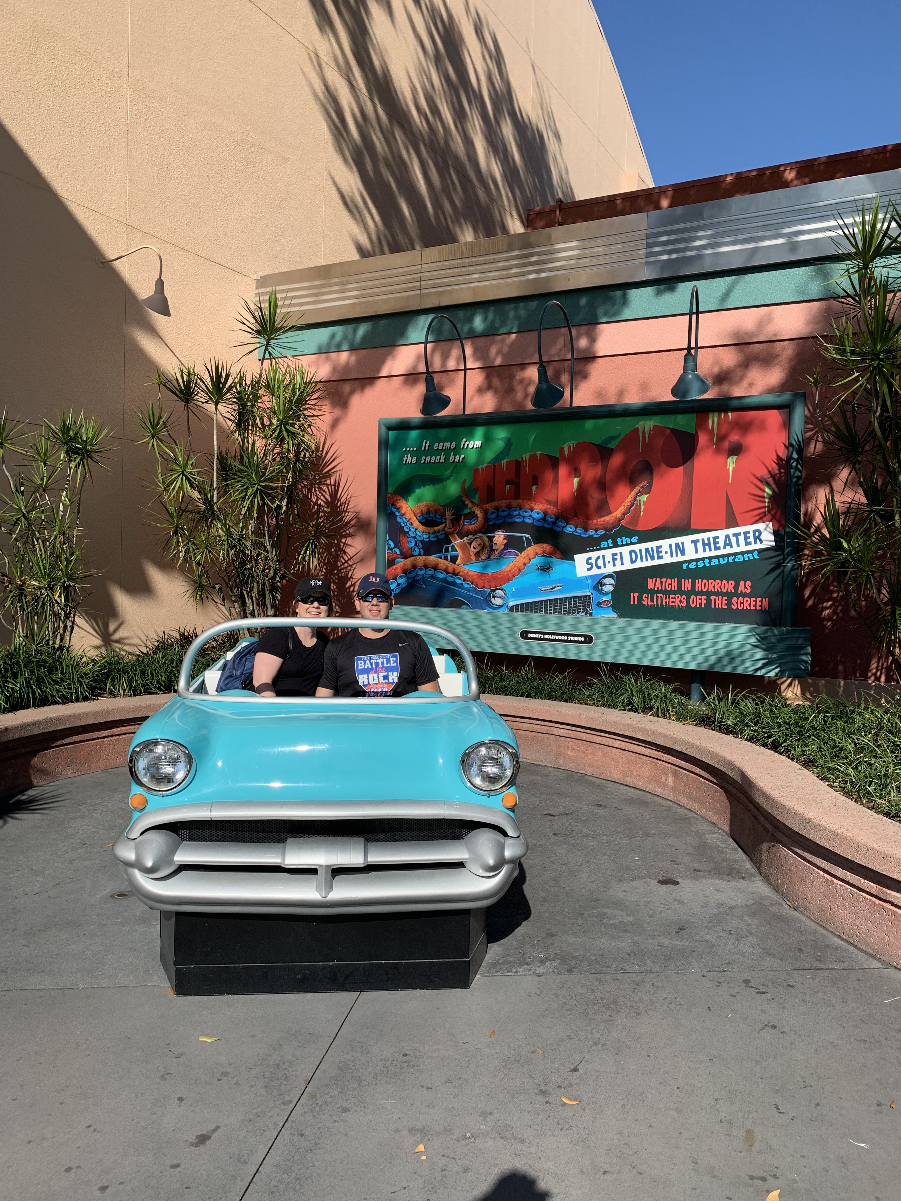 One thing we loved about Hollywood Studios is all the great places for different pictures, like this one by the Sci Fi Dine in Theater!