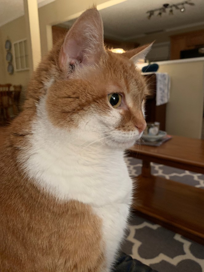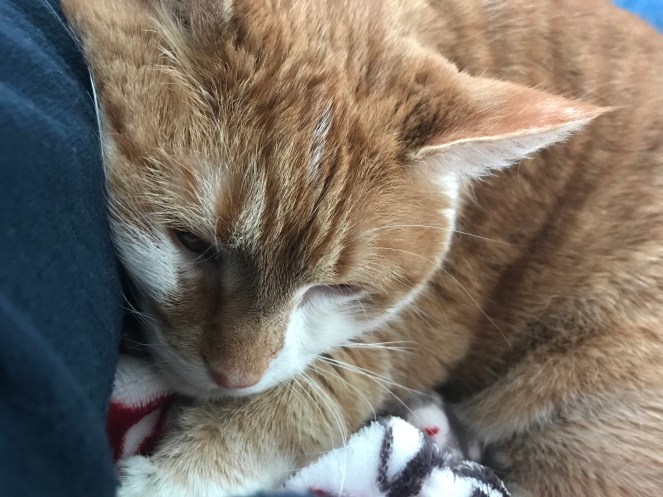 Peggy is a major lap cat and loves to snuggle into my arm like this. She definitely prefers me to other people and I’m ok with that. 🙂
