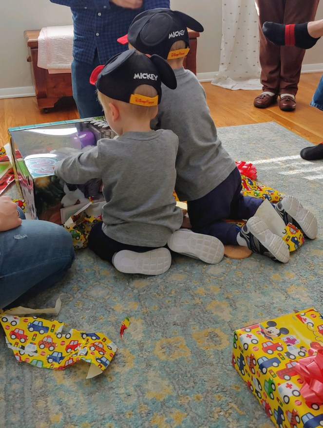 My sister planned the cutest Mickey Mouse birthday party for the cutest little Mickey Mouse lovers! My dad snapped this pic of my nephews in the hats we brought them from Disney World. I don’t share their faces on the blog, but if you know me in real life I’ll be more than happy to show you all the pictures. 🙂