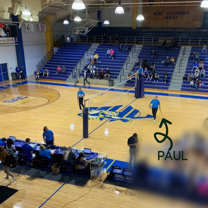 It’s time for #refereewifelife to pick up again – I got to come along to one of Paul’s volleyball games this month! Being the referee’s wife means you don’t need a ticket and you can sit in the balcony all by yourself if you choose! 🙂