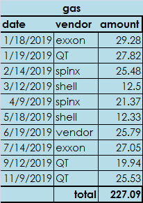 This is important whether you file your own or prepare them for an accountant. I create a spreadsheet to add up and track all the numbers contained in that paperwork. This can be as basic or as detailed as you need. Here’s a made-up example of a basic spreadsheet I might make for a list of itemized business expenses: