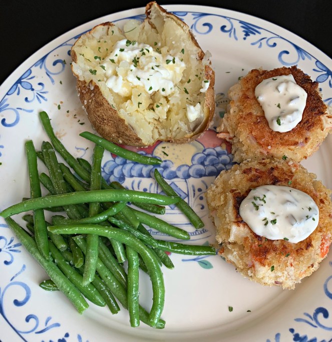 I’m trying to think of recipes that use things most people aren’t buying in bulk. These crab cakes use imitation crab meat, which is sold very inexpensively at Aldi and my local grocery stores.