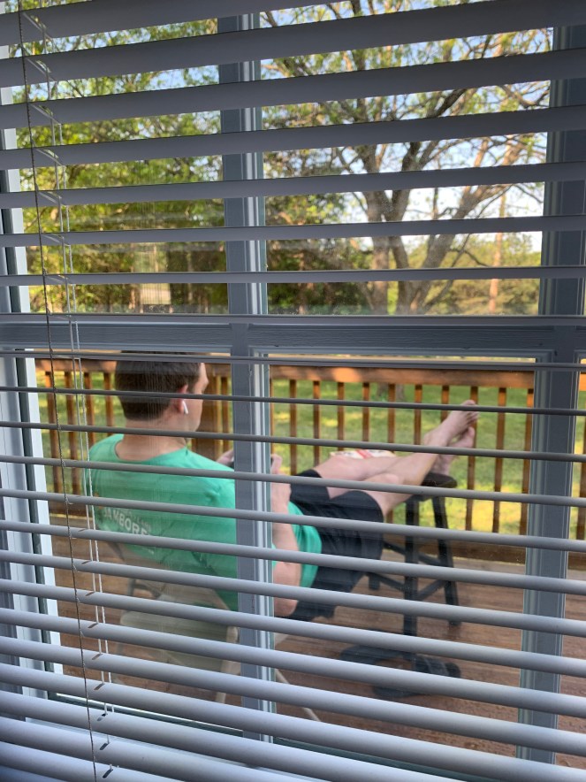 Paul finished staining our deck last weekend and we’ve both enjoyed it this week! I took my laptop out there one morning and was able to work in the shade for about an hour. We don’t have porch furniture right now so we’re rednecking it with folding chairs and kitchen stools. 🙂