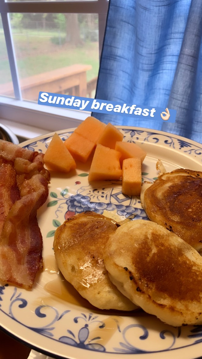 We are definitely enjoying the slow pace of Sunday mornings! I made pancakes and bacon – something we love but never have time to make or eat on a usual Sunday.