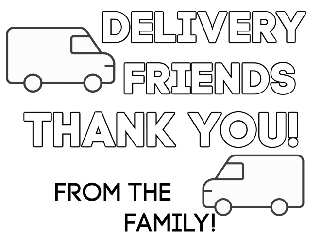 You don’t even have to do the basket to let your delivery service people know that you appreciate them! Print this sign, add your last name and display it on your porch – and I guarantee it will bring a smile to their faces. You can download the image from above or grab the PDF version here.