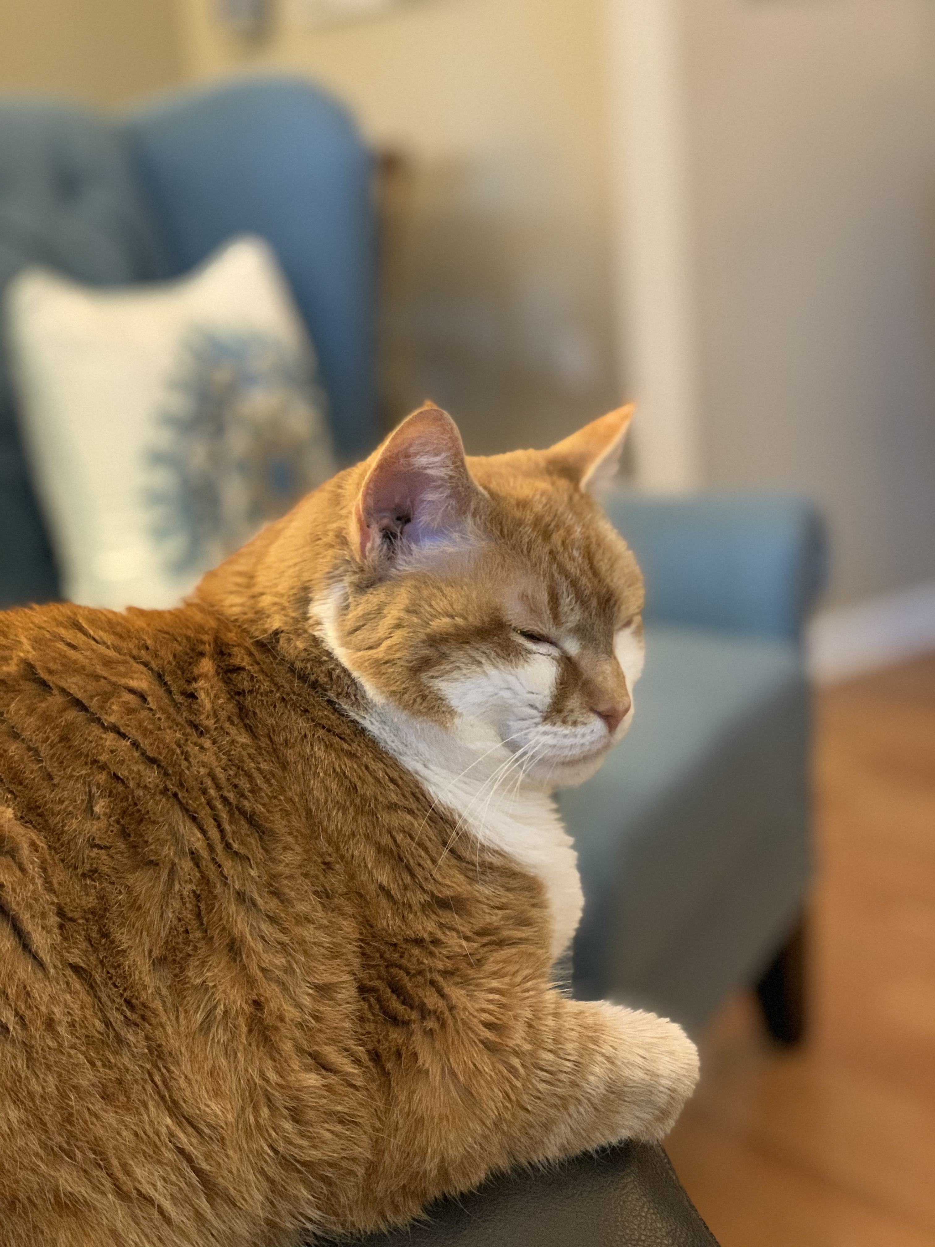 Of course, the cats love having me home all the time. They follow me from room to room and find a cozy spot to snuggle near me all day and all night.