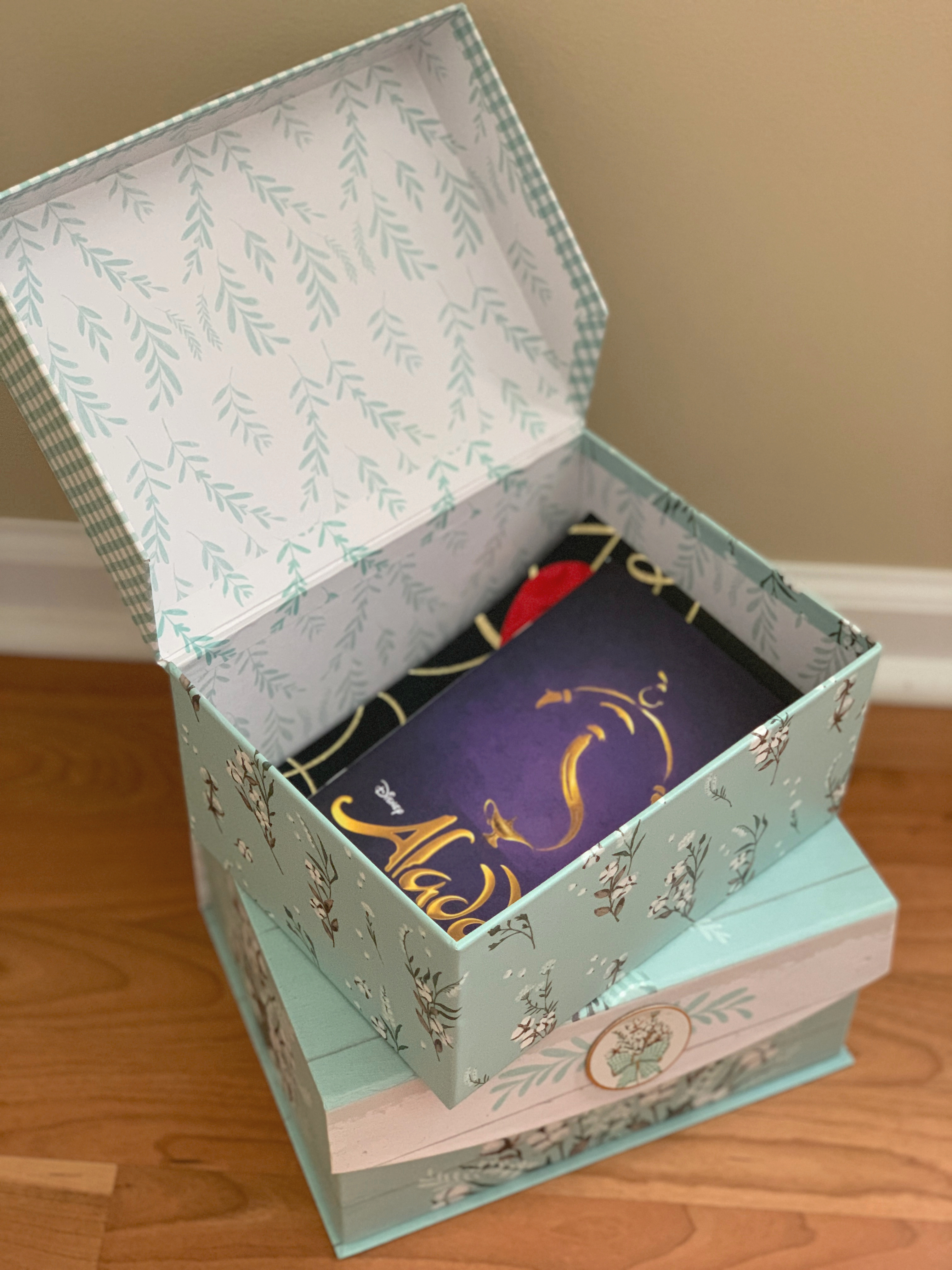 You can find these boxes at stores like Home Goods or TJ Maxx, but I love the price and the selection at Dollar General. I’ve also used a box like this to contain a care package-type gift, and it was a really nice alternative to a gift basket!