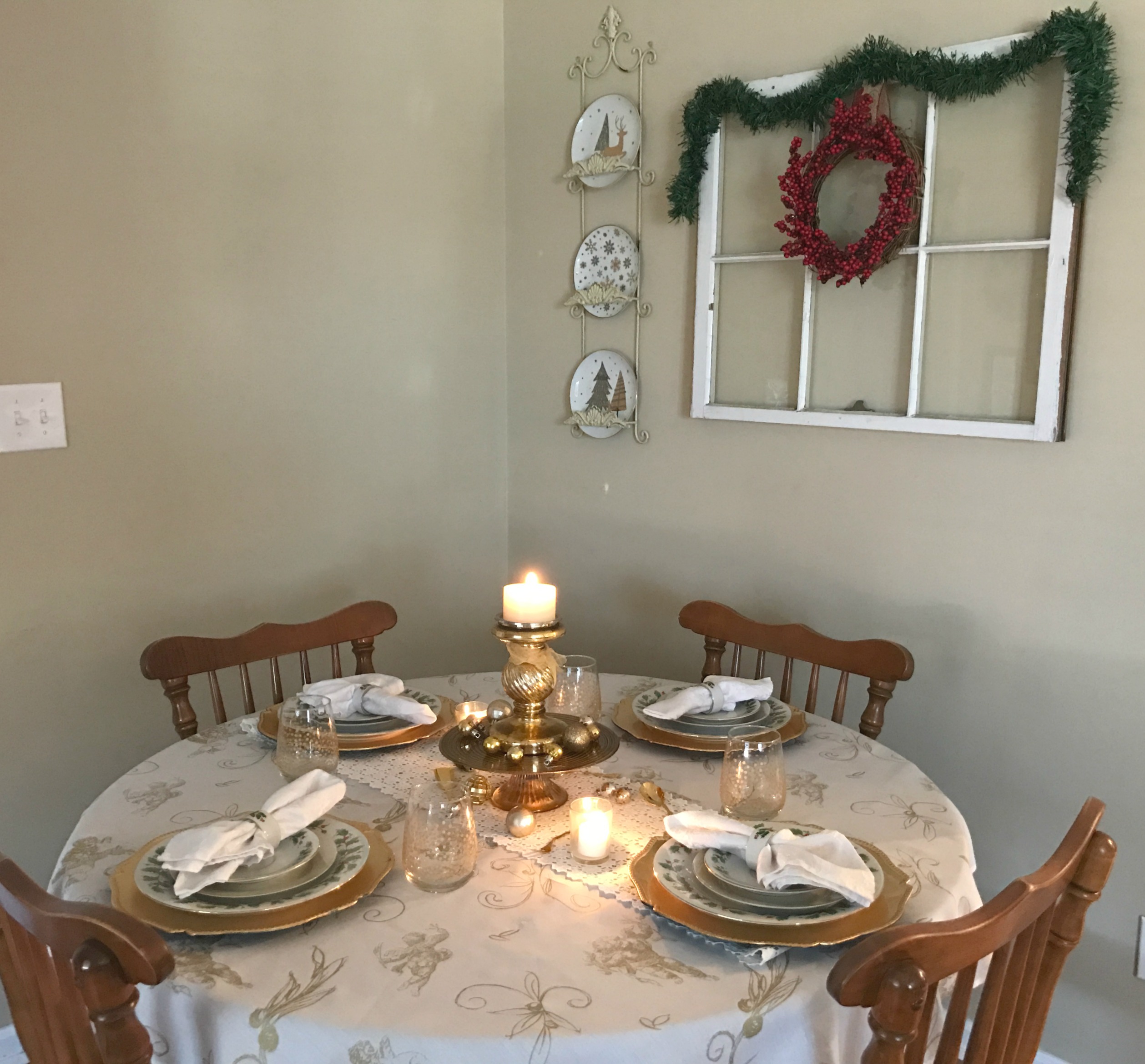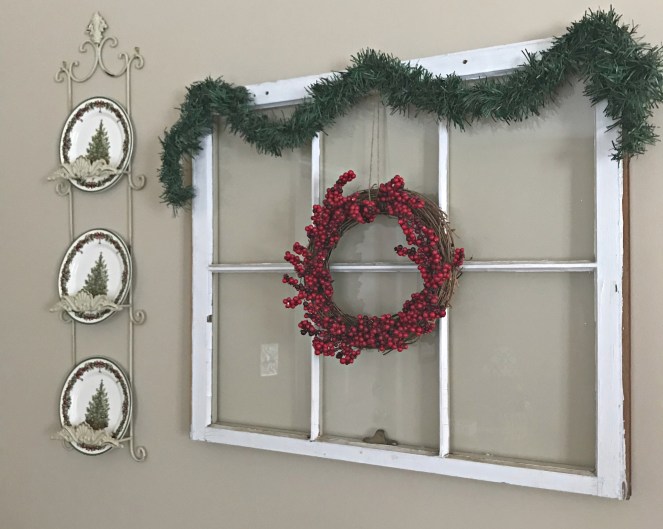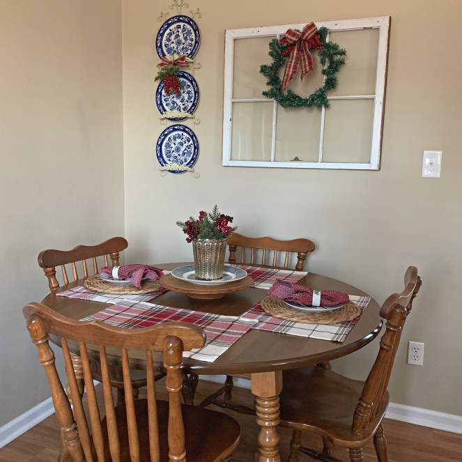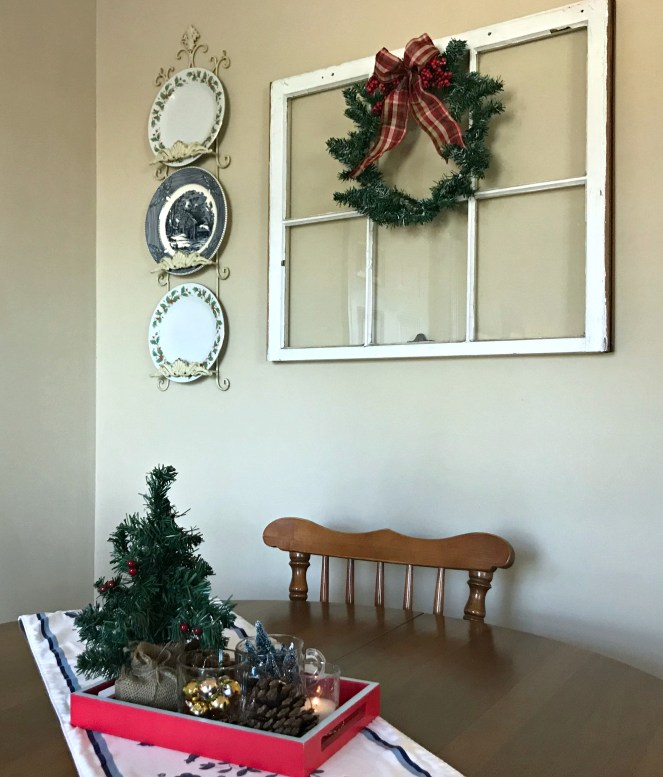 I’ve done several different looks here for Christmas – this is my Gramma’s Christmas china mixed with a thrifted Currier and Ives plate.