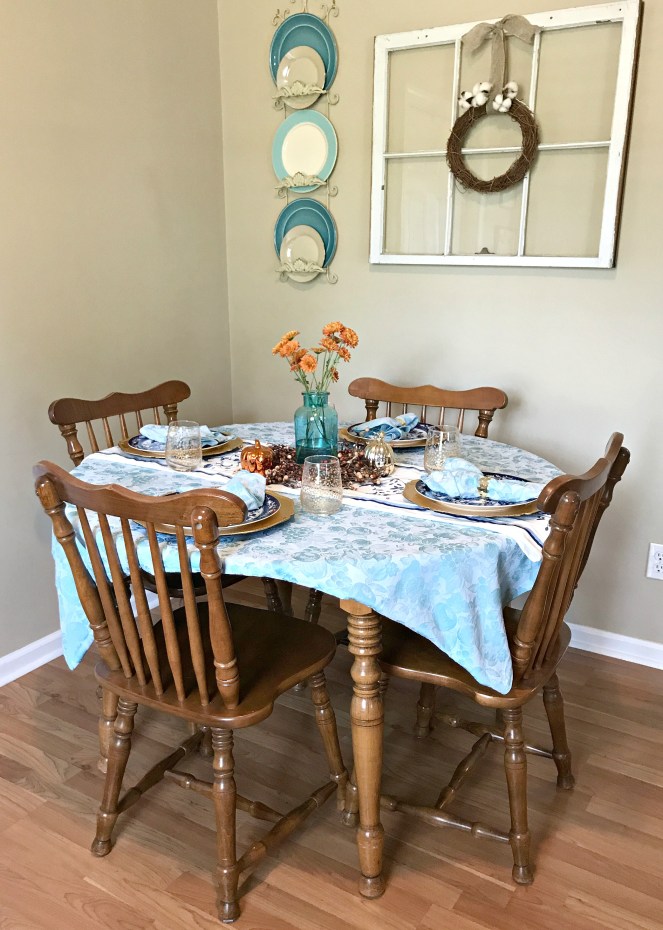 Below I combined two turquoise melamine plates from Target with some antique plates from my collection.