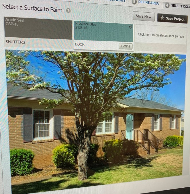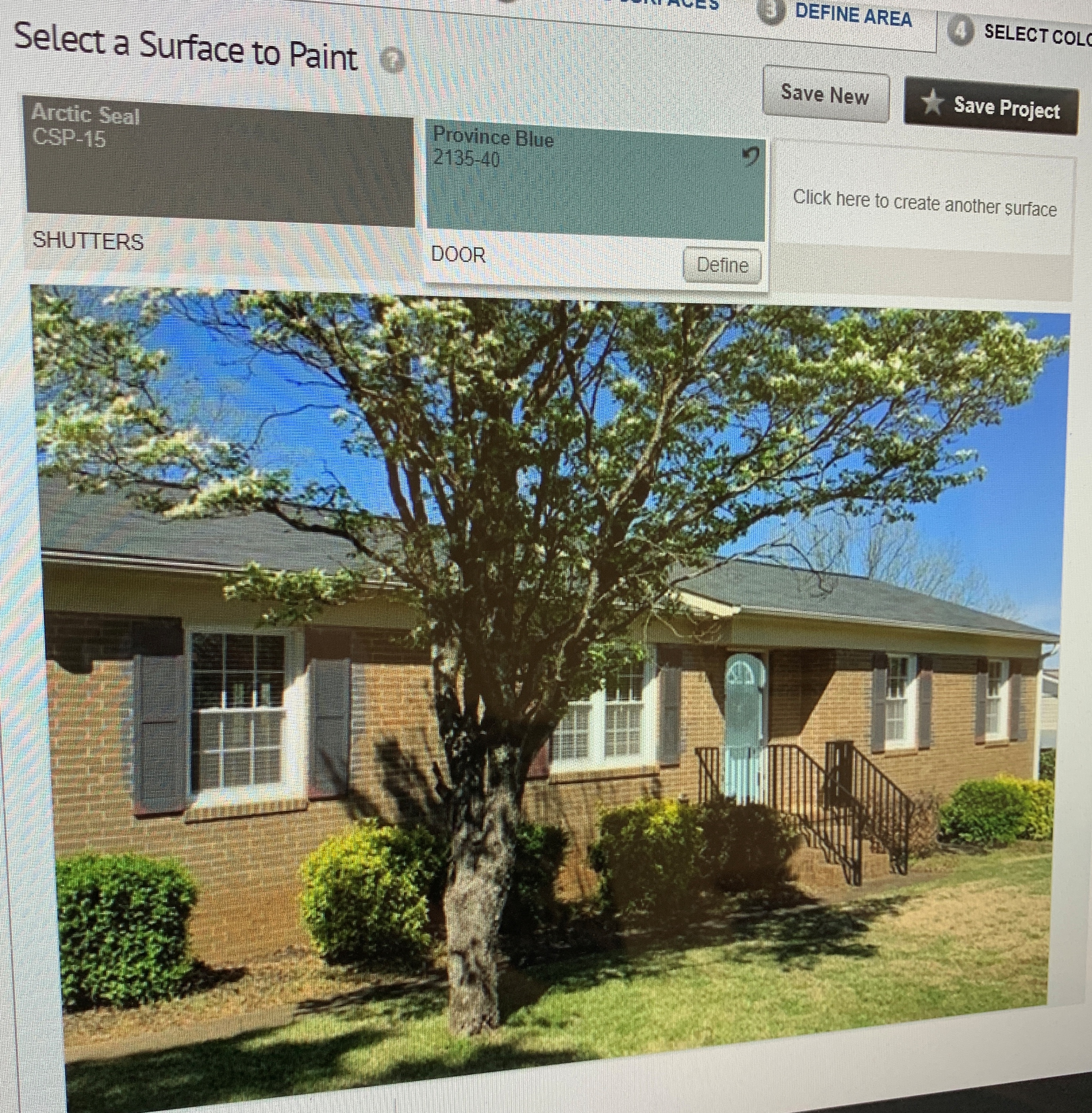 I had a few color ideas in mind, but I went to Pinterest and looked up “tan brick houses” to get some inspiration. Then I used the Benjamin Moore Personal Color Viewer to see how the colors would look in real life. This is SO much easier than standing in front of a wall of paint colors in the hardware store.