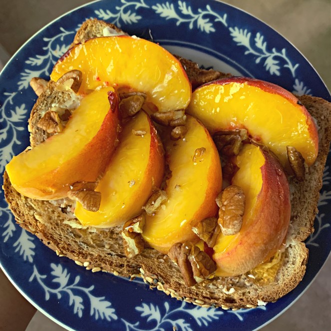 - Summer Toast: Cream Cheese, Peaches, Honey and Pecans on Toast