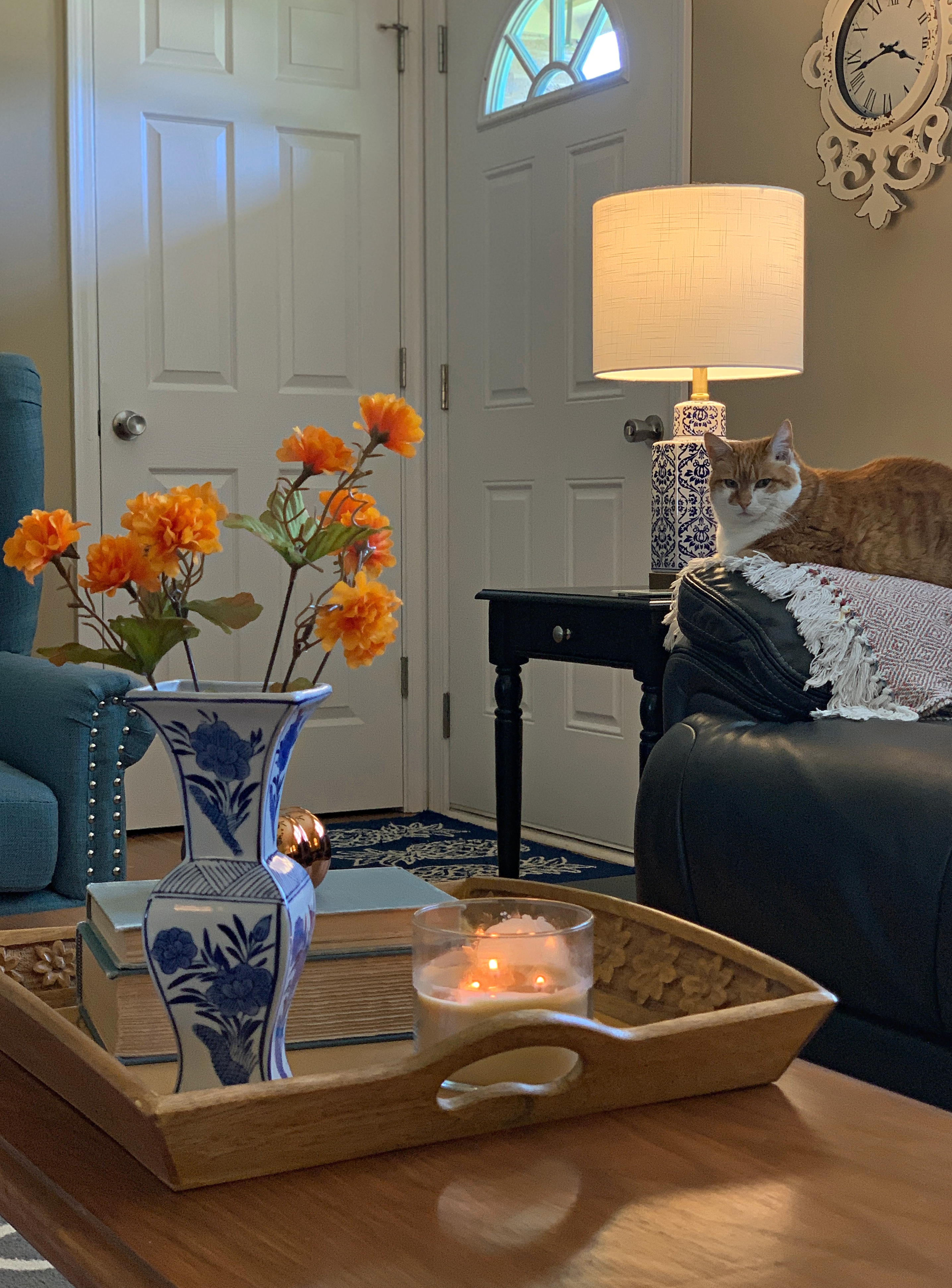 So pretty!! I love the pops of orange and your berry bouquets throughout. One of my cats thinks those fake berries are so fun to chew on. I have to keep them up high otherwise they turn into a cat snack.