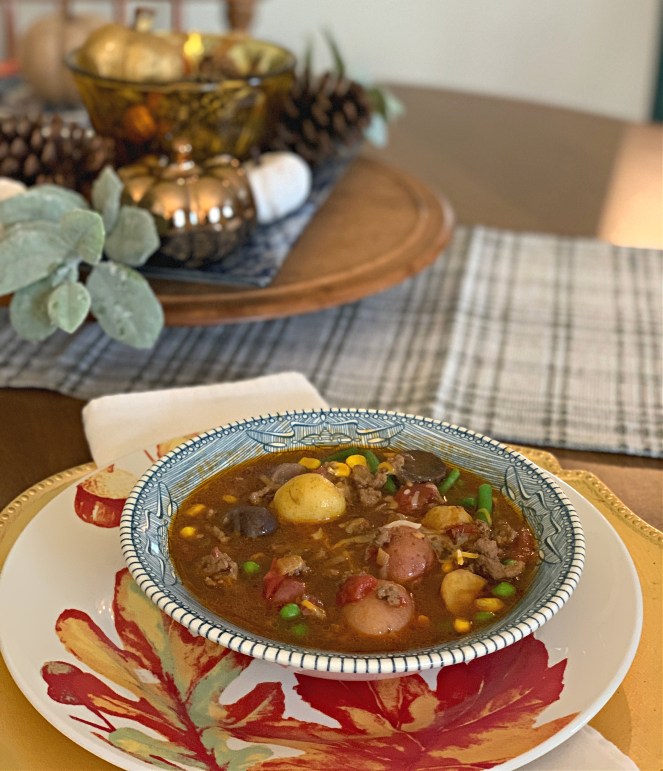 I tried a new Southern Living recipe for Hamburger Stew that was so delicious! The broth was extremely flavorful, especially for a recipe that doesn’t need to simmer all day. I used a rainbow medley potato that I had on hand, so as you see in the picture my potatoes were purple, yellow and red.