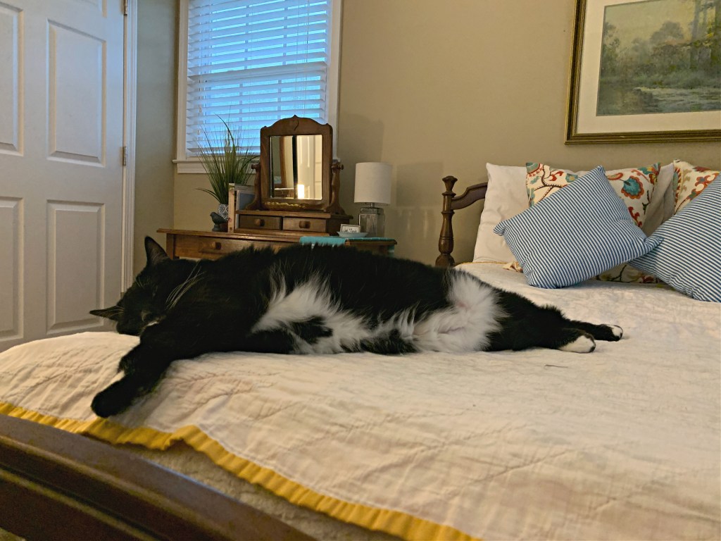 Because the cats love to sleep on the guest bed, I keep it covered with an extra blanket that I remove only when company is about to arrive.