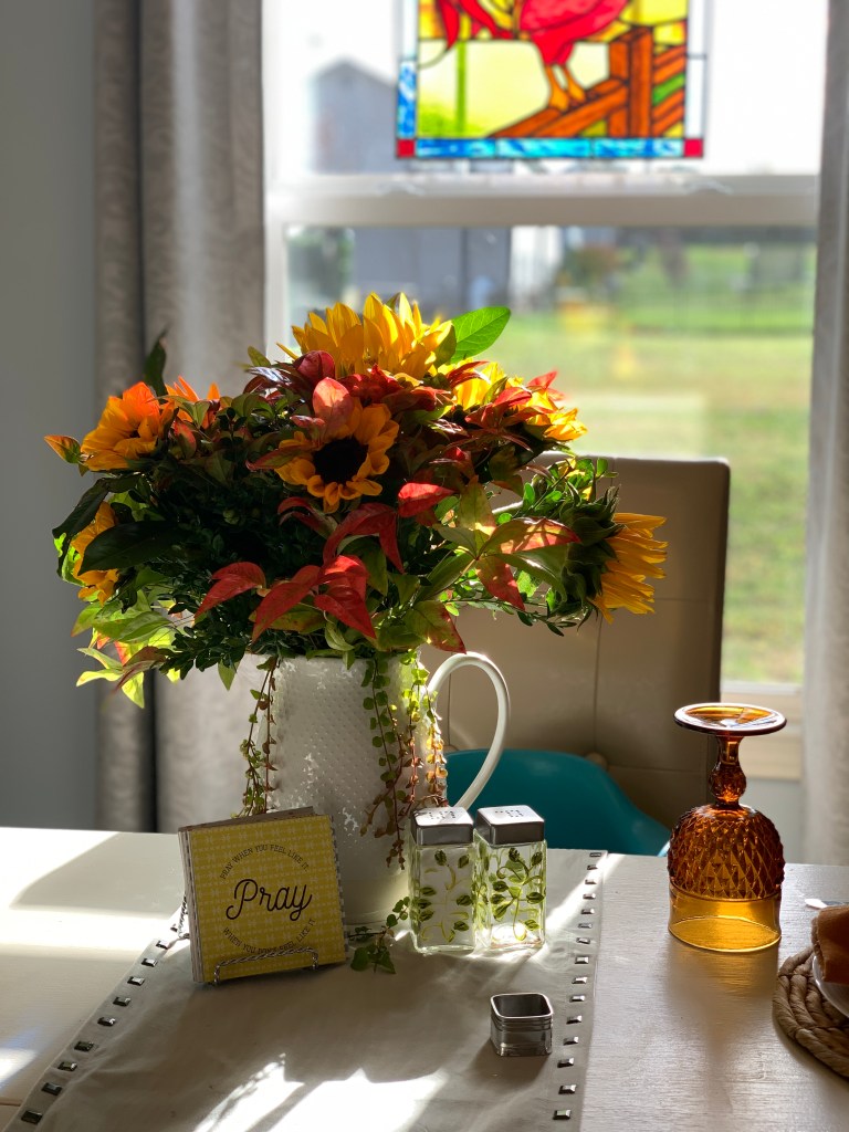 My mouth is literally watering after typing that. This gorgeous arrangement included flowers my dad brought her that day. ❤ We had a great time talking over supper and for a little while after! It was a great day.