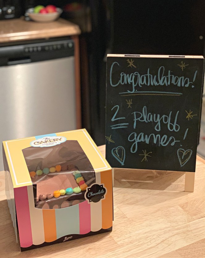 I felt like we needed some fun and celebration this week! You might not know that working as a sports official is a very competitive thing – receiving playoff games (especially now) is a big deal. Paul was assigned two of them this season, so I ordered a cake to celebrate!