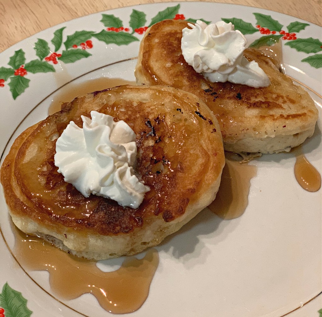 Here’s a tip for the pancakes: I put frozen mixed berries in the microwave for about 30 seconds. I reserved the juice and used the berries in the pancake batter. After plating the pancakes, I drizzled the warmed juice along with the syrup for an extra kick of fruity deliciousness!