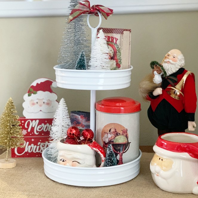Everything looks so cozy! I love your tiered tray with all of your Santa decorations. It’s fun to keep the same things in one spot for an extra festive pop.