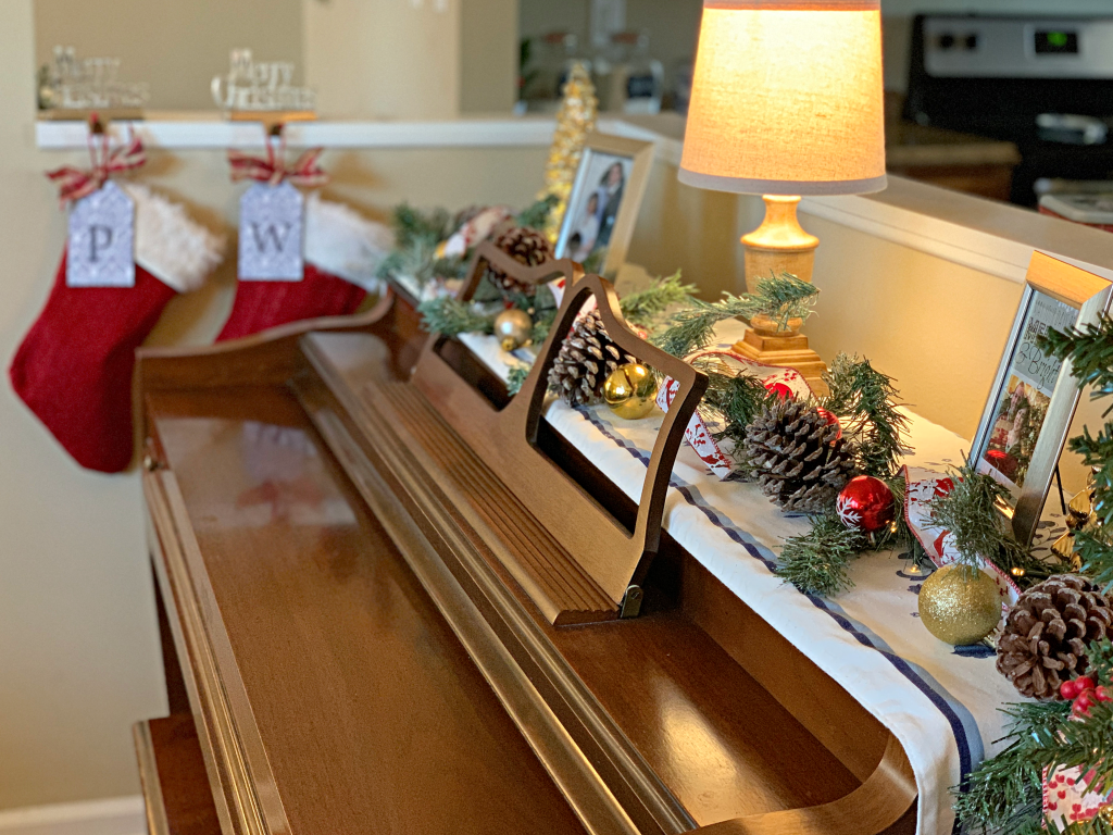 I usually display all of our previous year’s Christmas cards on the piano, but with a total of 11 cards I decided to sprinkle them throughout the house this year!