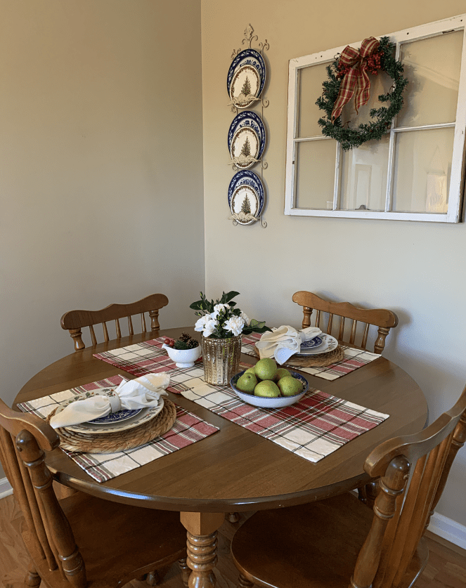 I really love this Santa collection in the dining area! I can see it when I’m making supper and it makes me smile.