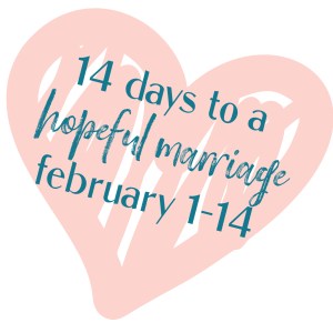 I have created a simple challenge that I call 14 Days to a Hopeful Marriage. If you start on February 1st, you can end up on Valentine’s Day with a hopeful heart (and maybe a happy husband – results not guaranteed 🙂 ). I’ve shared these prompts the last two years, but we can all benefit from them again this year!