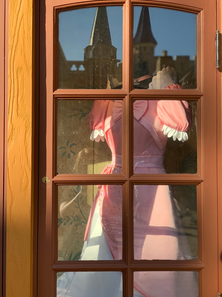 The crowd levels were low, allowing us to see details we normally would miss. I love this window display of Cinderella’s dress with the castle in the reflection!