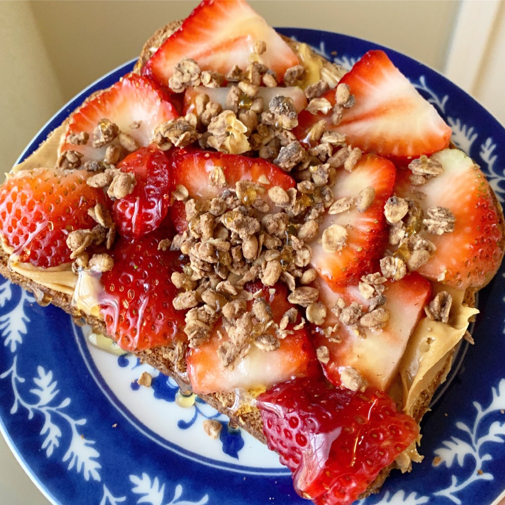 The peanut butter and strawberry toast looks amazing! Peanut butter and strawberries are a great combination.