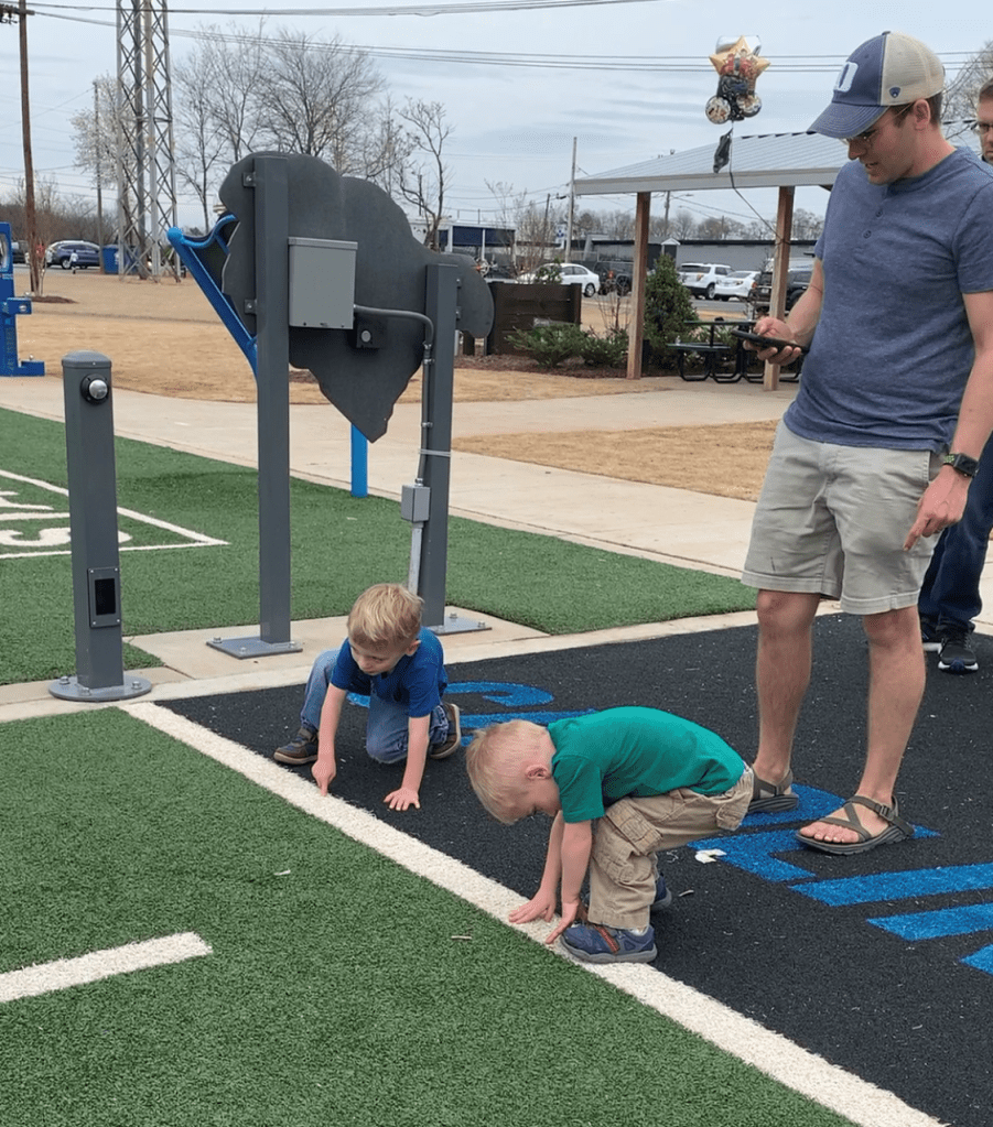 One weekend my sister and her family were traveling through on their way home from vacation. We met up with them at a new restaurant that happened to be next to a little park set up like a football training camp.