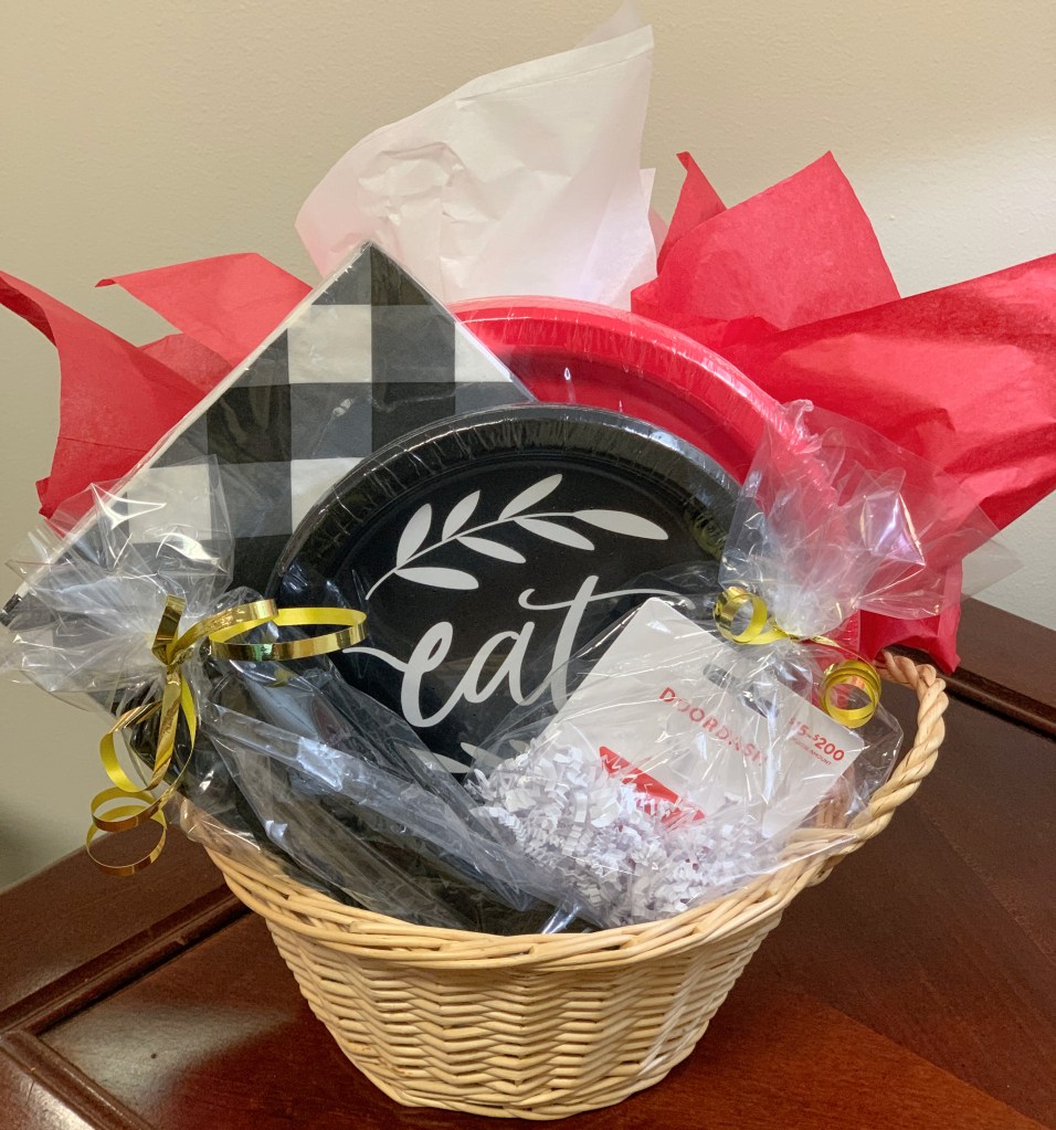 Here’s a supper basket I made for an event at work, using products from Dollar General. They currently have this fun line of lemon design paper products that would make a really pretty supper basket!