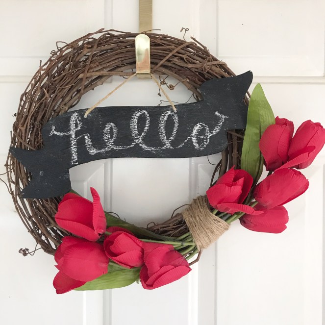 Tulips would have also been pretty for spring. I think this will be an easy way to change up my door decor this summer – I might swap the bright colors out for hydrangeas or something more neutral later on in the season.