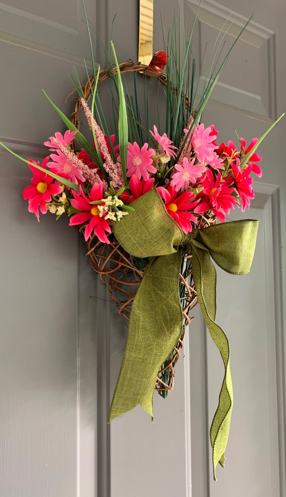 I love basket wreaths! I have a basket of tulips on my front door right now. Yours looks really pretty.
