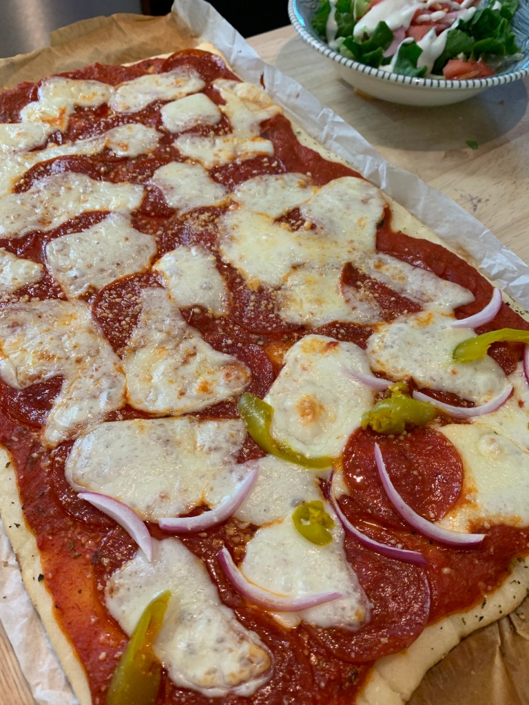 A couple weeks ago I ended up with a huge package of deli pepperoni in my online grocery order. Since I hadn’t ordered it and wasn’t expecting to have 16 ounces of pepperoni on hand, I quickly rearranged my menu to use it up in the “7 days after opening” window.