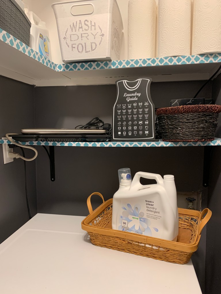 I also realized after my husband installed the shelf that I should have gone with a longer one. But as we are not DIY people – once something like that is done, we are more than happy to just move on and live with it!