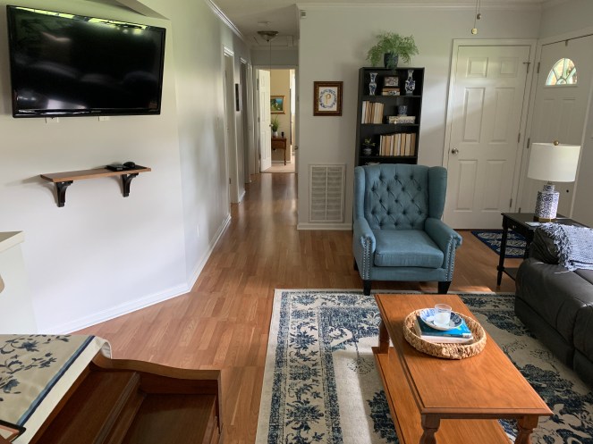 If you look down the hall in the picture below, you’ll see the original paint color on the bedroom wall. We will probably paint the bedrooms in the next year, so until then I’m choosing to be content with the drastic upgrade in the rest of the house!