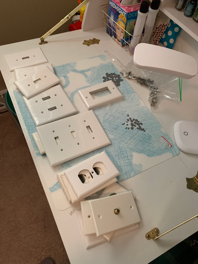 I carefully organized all the decor in one spot. It’s so helpful to contain the mess and to keep at least one room looking “normal” and tidy. The bedrooms were off limits to piles of stuff, and it was nice to relax in there during the evenings.