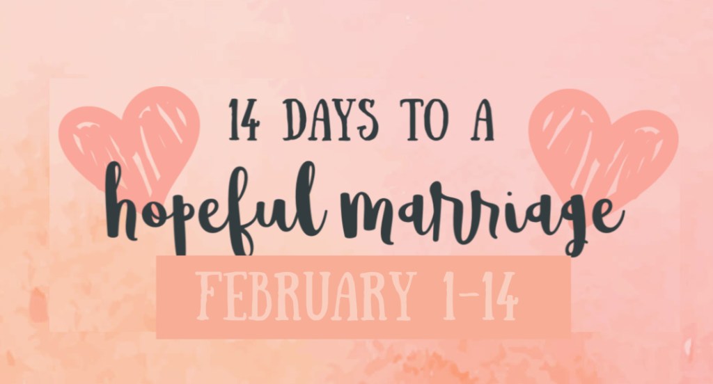 Want to join me? I have created a simple challenge called 14 Days to a Hopeful Marriage. If you start on February 1st, you can end up on Valentine’s Day with a hopeful heart (and maybe a happy husband – results not guaranteed 🙂 ).