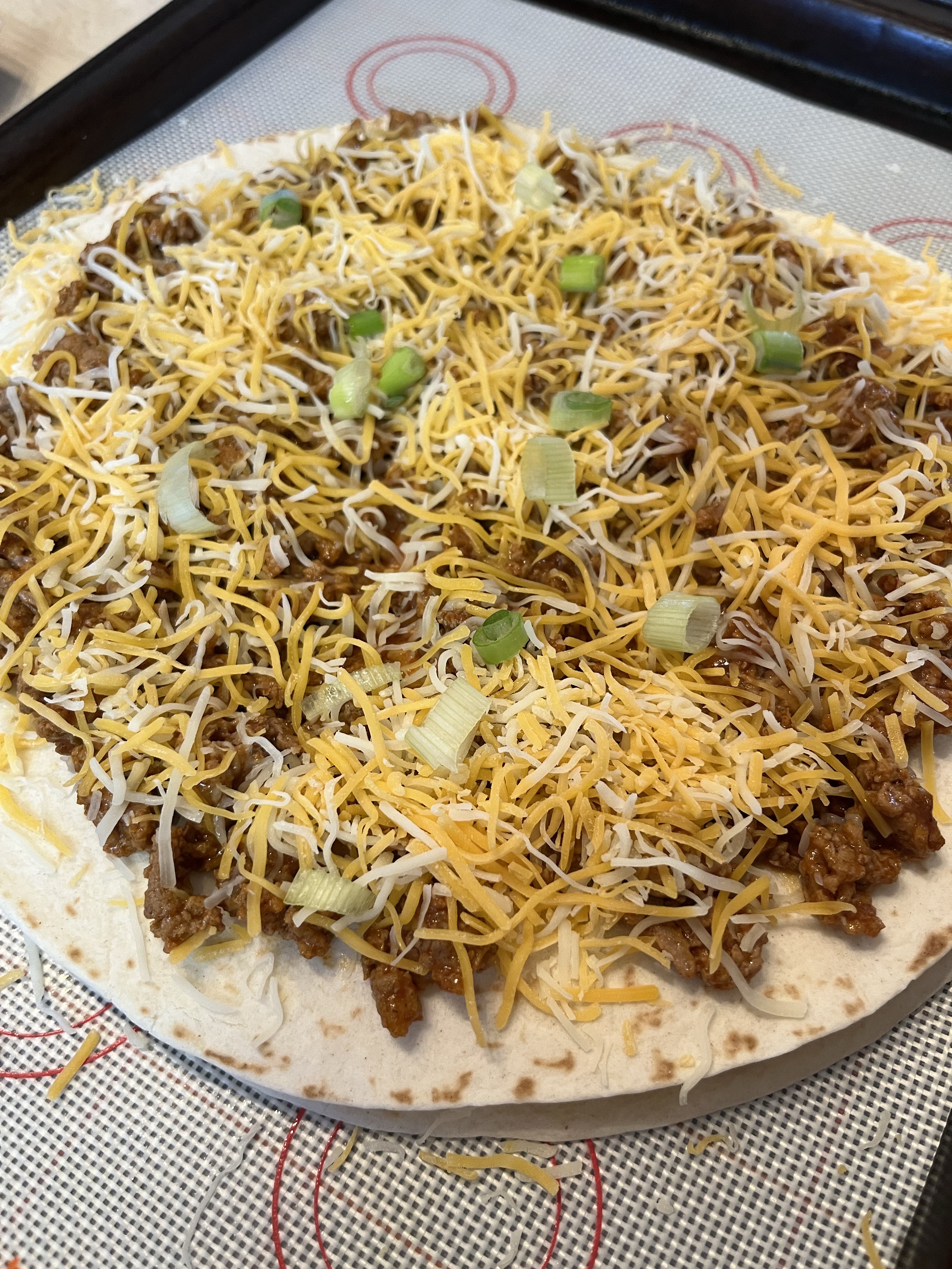 - Double Decker Baked Quesadillas/Toppings: Lettuce, Sour Cream, Salsa, Avocado