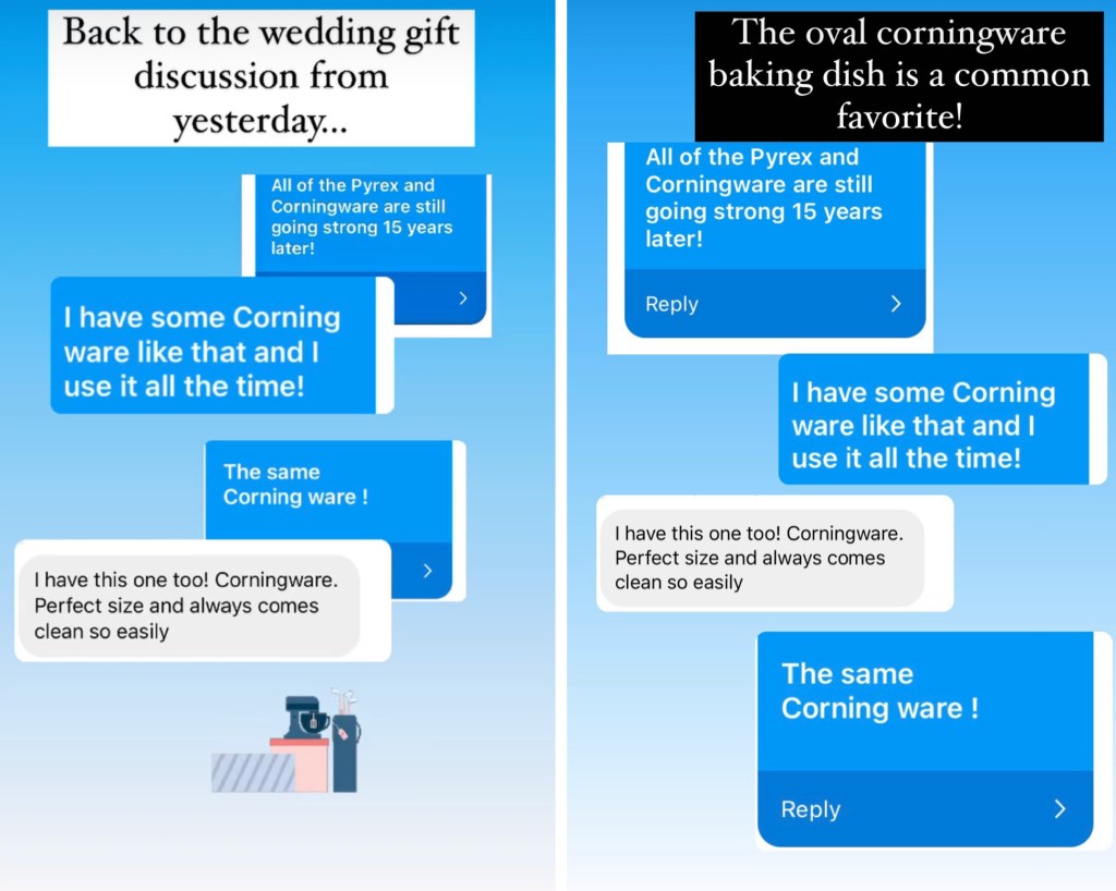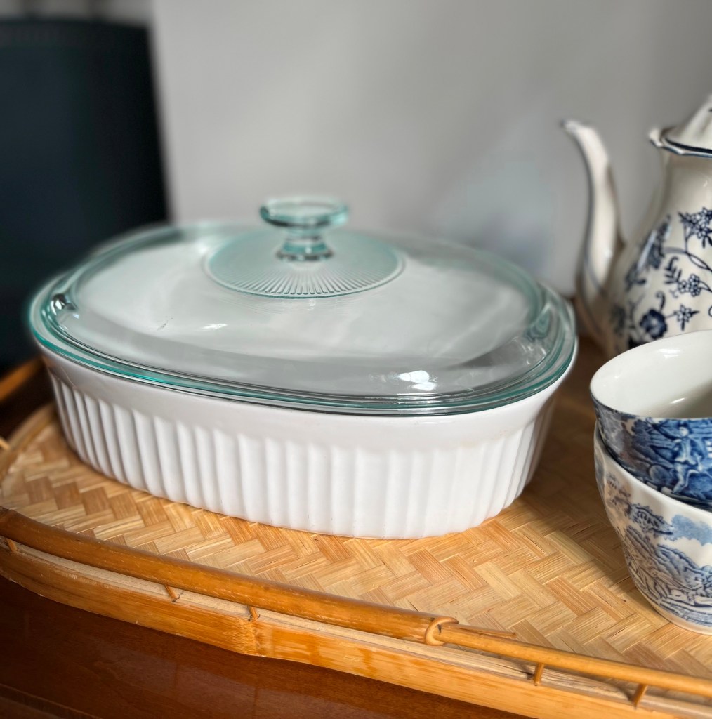 A while back I shared my 2 1/2 quart Corningware dish on Instagram Stories and talked about what a great wedding gift it was! I don’t remember if I registered for it or if it was just a thoughtful gift from someone who knew it was a great dish, but it’s a keeper.