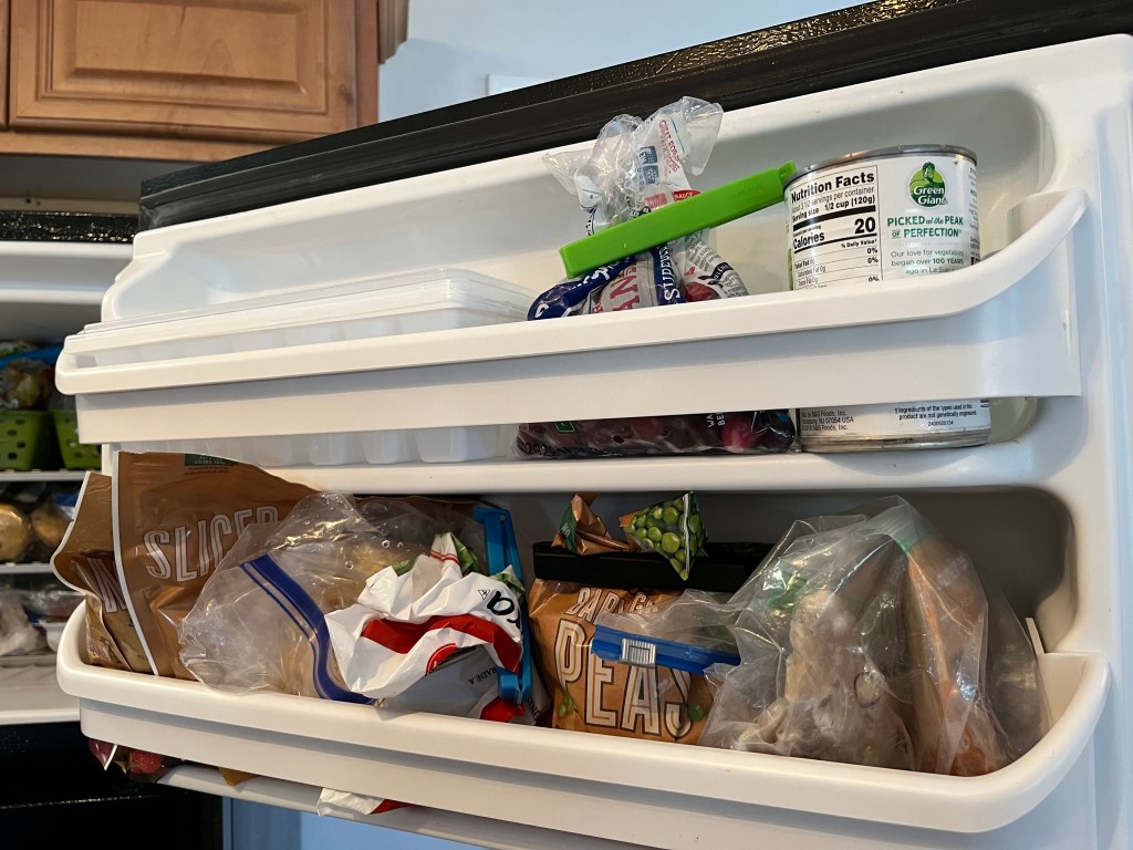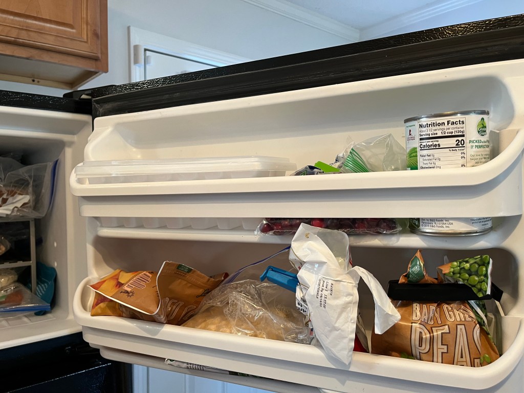 Here’s the door side of my freezer. I keep an empty can in there for storing leftover grease – once it’s full, I throw it away mess-free.