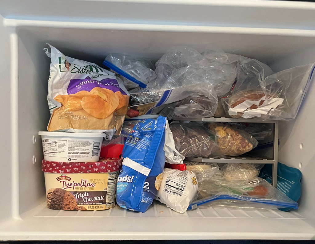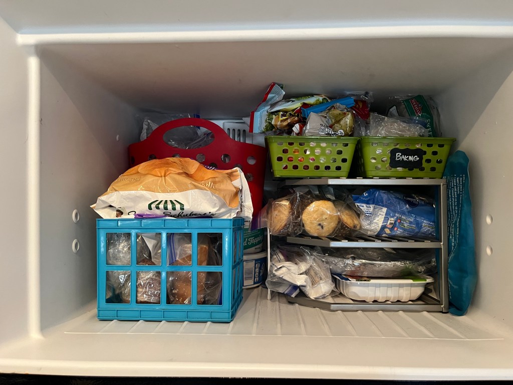 The best way to maintain your freezer’s organization is to use the things that are stored there. Before you make your grocery list or meal plan, check the freezer to see what you can incorporate from what you already have. Before you make muffins or cookies, check the freezer for baked goods that need to be used up.