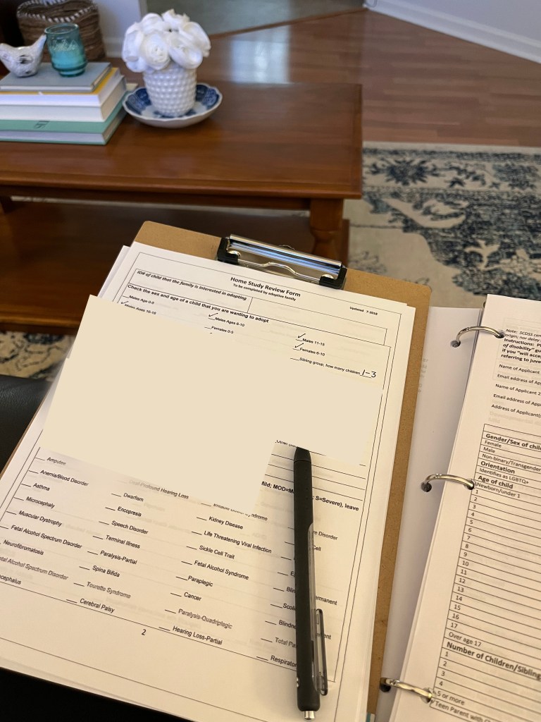 There’s always paperwork to fill out. Each inquiry on a child comes with a different set of questions to answer or a 10 page form that’s just slightly different from one I filled out for another inquiry.