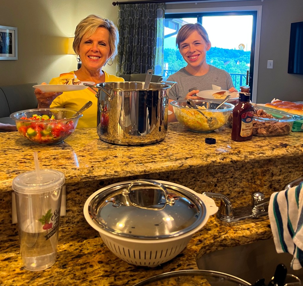 My Dad has a connection with Wyndham, so that’s where we always stay. But Pigeon Forge has lots of options for cabin rentals or condos with several bedrooms. I’ve also stayed in downtown Gatlinburg, and that is fun too.