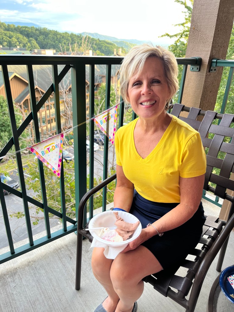 I’ll take the mountains over the beach any day – it’s hard to beat this view from our condo. Mom’s birthday is this weekend, so we celebrated while we were together. Alli made 3 different varieties of her amazing cookies that we served with mom’s choice of ice cream.