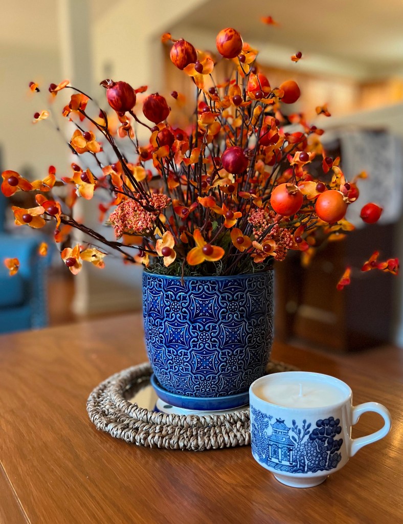 9 thoughts on “Fall Decor 2022: Blue and White with Pops of Orange