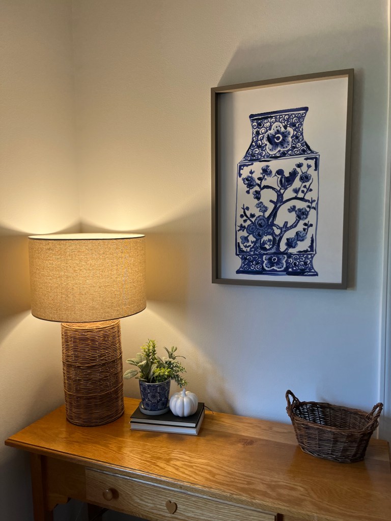 Welcome to my 2022 fall decor tour! This year I went with mostly blue and white decor, adding in a few pops of orange.