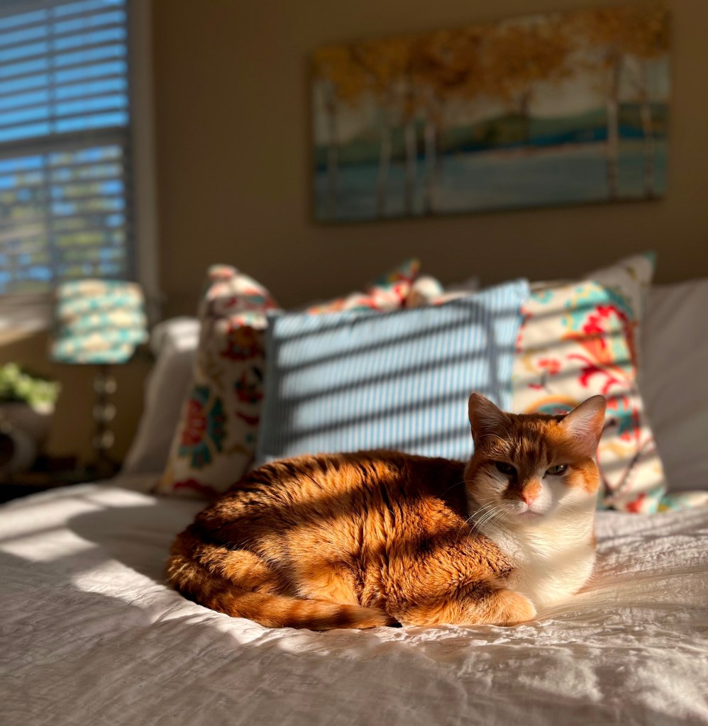 It’s not a home tour without the kitties! Thelma Lou is below – she turns 10 on Saturday.