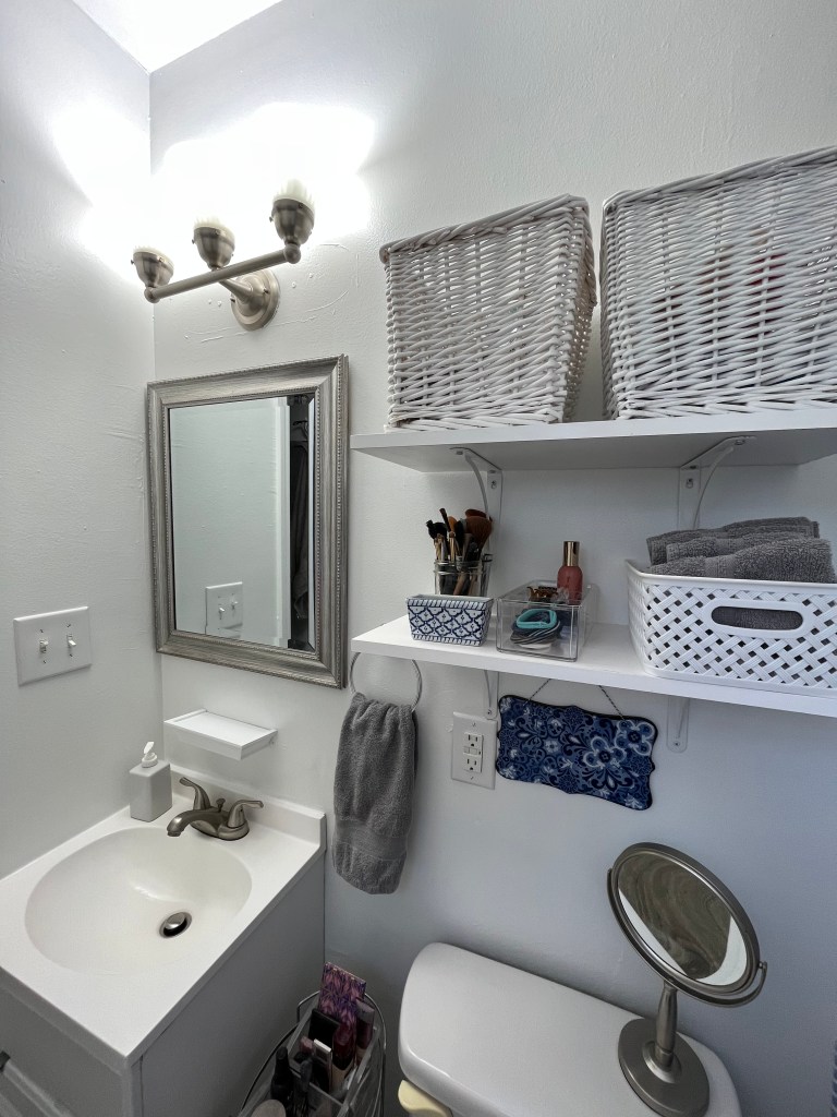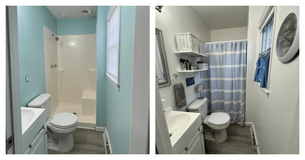 We painted this bathroom 5 years ago, so it was due to be repainted. Confession: I never really loved the bright color I had in the bathrooms. It was always so bright and ended up looking dated. I am so glad I went with white this time!