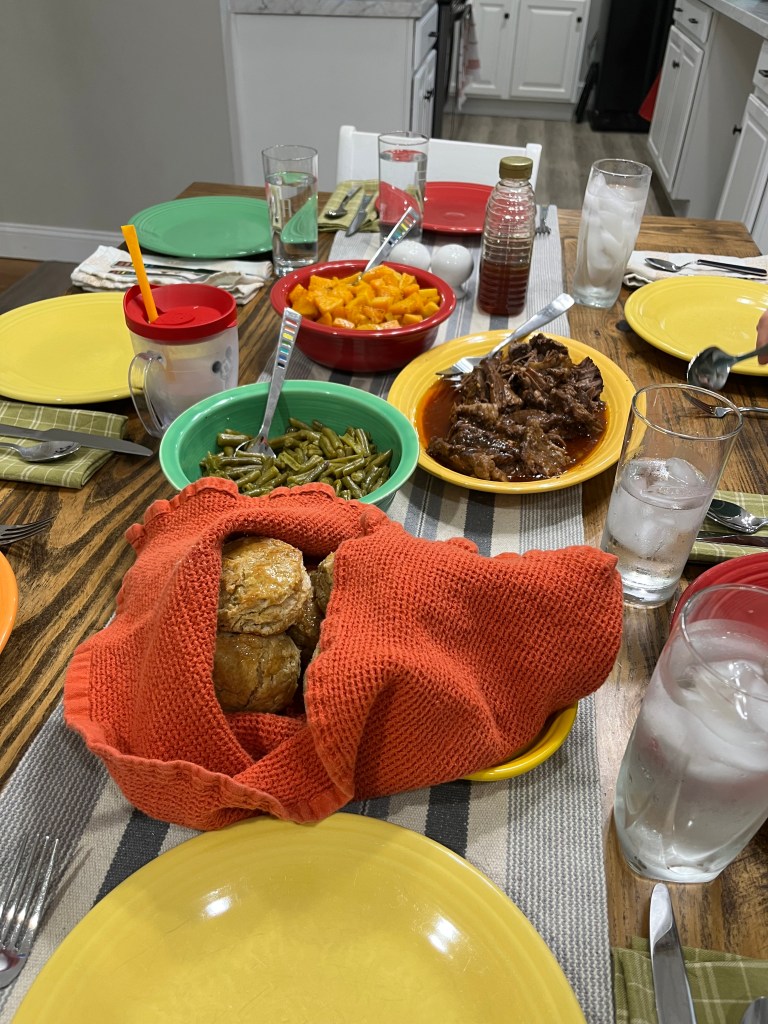 We wrapped up the weekend with a delicious family supper (minus Paul who was working hard on the lacrosse field). Alli made a delicious pot roast with parmesan risotto and some amazing biscuits along with green beans and roasted squash. There are many reasons I wish I was her neighbor and this is one of them. 🙂